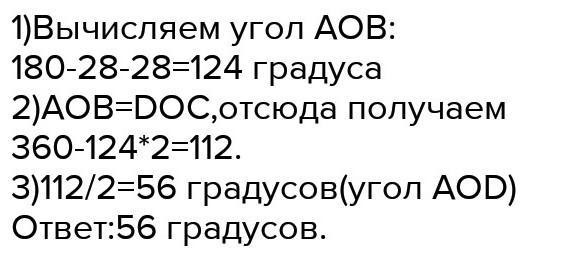 диагонали прямоугольника abcd пересекаются в точке о угол abo=28.Найти угол вос