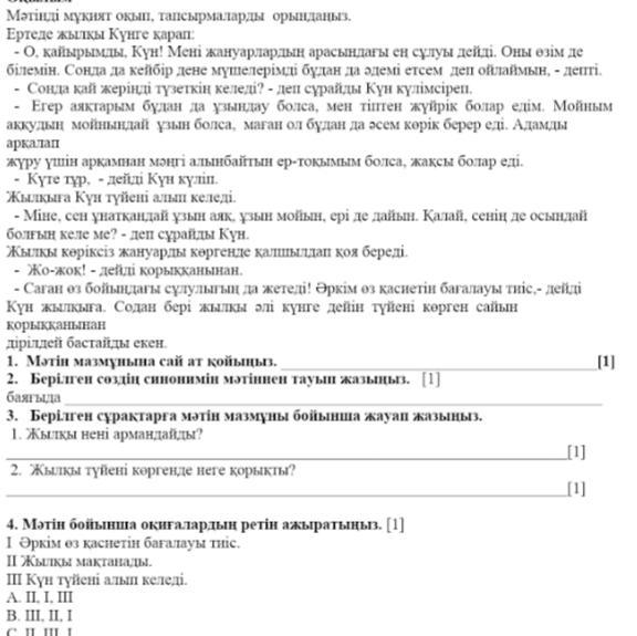 2.Көріксіз жануарды көрген соң қорқып кетті.