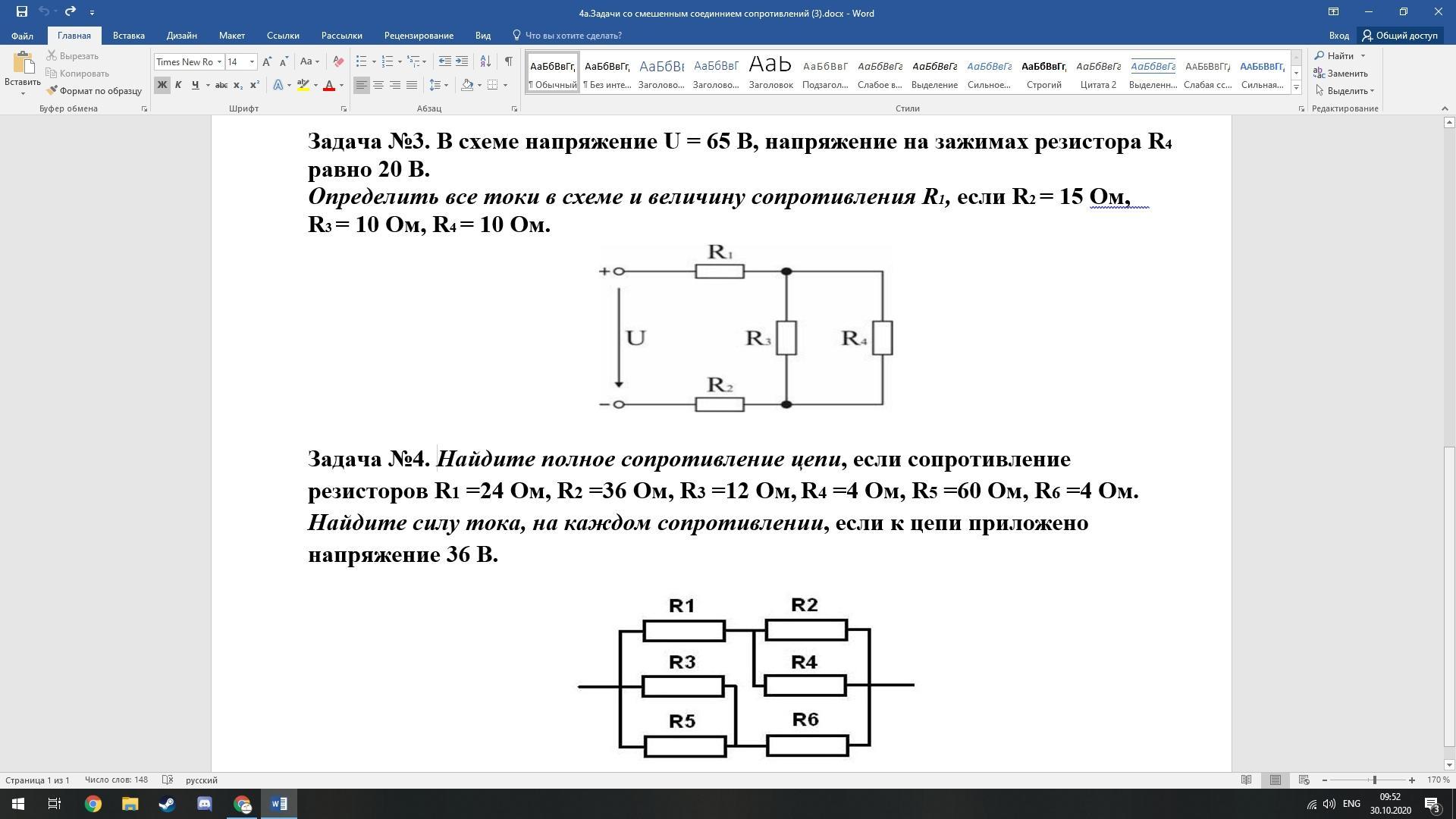 Сначала находишь сопротивление в R2, R4, R5 (3+24+3) это равняется 30, потом находишь сопротивление в R3 и R2,4,5(она равняется 30) по формуле 1/x=1/R3+1/R2,4,5 находишь x, она равняется 12, После находишь сопротивление в R1, R2,3,4,5 и R6 оно равно 12+3+3 = 18.