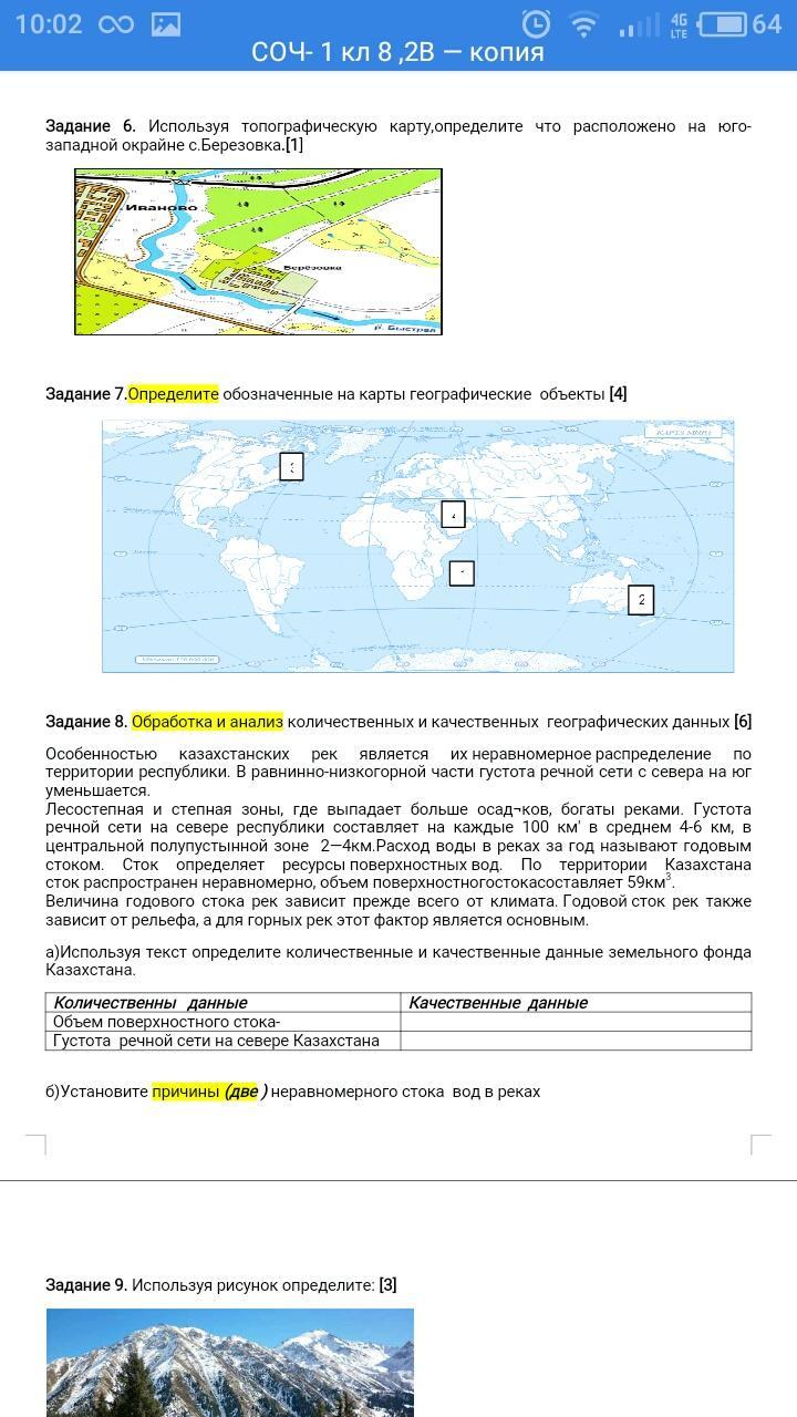 Задание 7.Определите обозначенные на карты географические объекты [4]