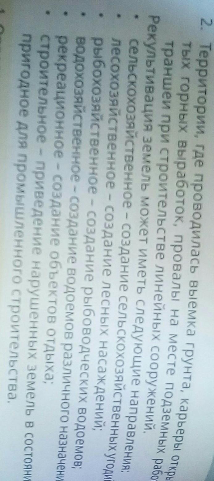 (Р.s. Рекультивация-это комплекс работ по восстановлению продуктивности и реконструкции нарушенных промышленностью ландшафтов.)