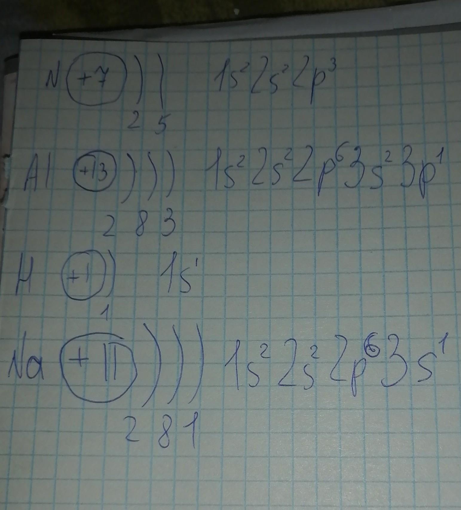 напишите координаты периоуда и группу элементов которые находятся в таблице .Для N ,AL,H,Na.Распишите как расходятся электроны по оболочкам.