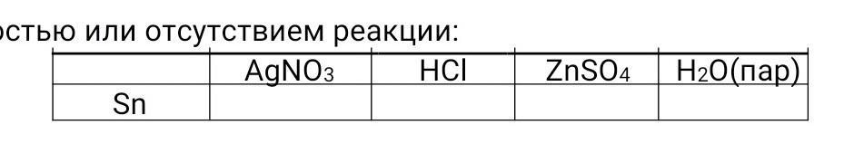 Для исследования активности металла ученик поместил олово в разные растворы.