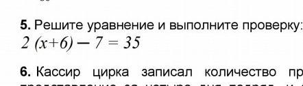 2(х+6)-7=35 ПОЖАЛУЙСТА ПОДСКАЖИТЕ С ПРОВЕРКОЙ,ДАМ 30 БАЛЛОВ