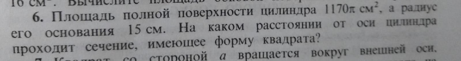 h = S / (2πR) — R = 1170π/(30π) — 15 = 39 — 15 = 24 (см)