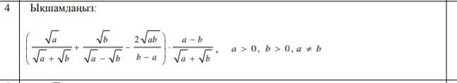 2)\frac{\sqrt{a}+\sqrt{b}}{\sqrt{a}-\sqrt{b}}*\frac{a-b}{\sqrt{a}+\sqrt{b}}=\frac{(\sqrt{a} -\sqrt{b})(\sqrt{a}+\sqrt{b})}{\sqrt{a}-\sqrt{b}}=\sqrt{a}+\sqrt{b}\\\\Otvet:\boxed{\sqrt{a}+\sqrt{b}}