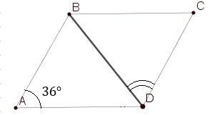угол D = углу B = (360⁰-36⁰-36⁰)/2 = 144⁰
