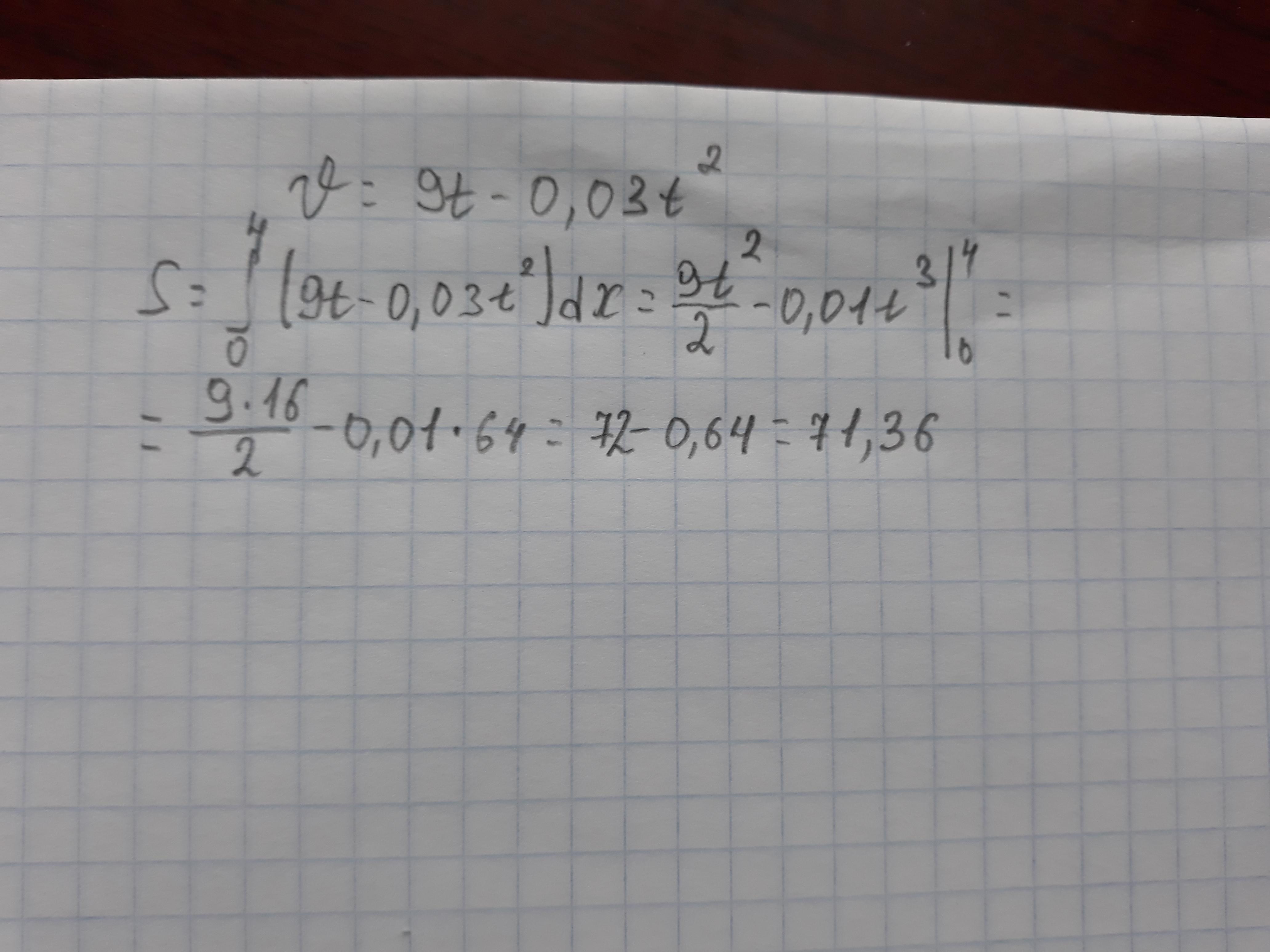 от t = 0 до t = 4, если скорость движения меняется по закону: v = 9t − 0,03t^2