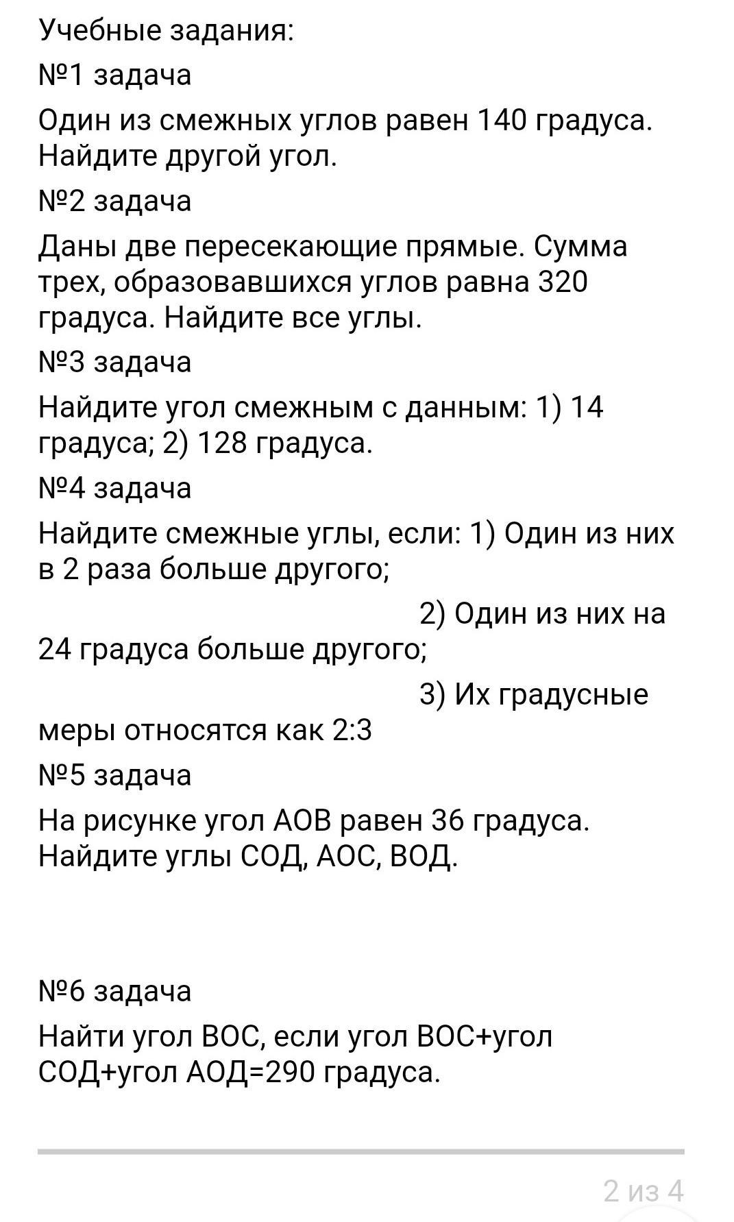 Найдите смежные углы, если: 1) Один из них в 2 раза больше другого;