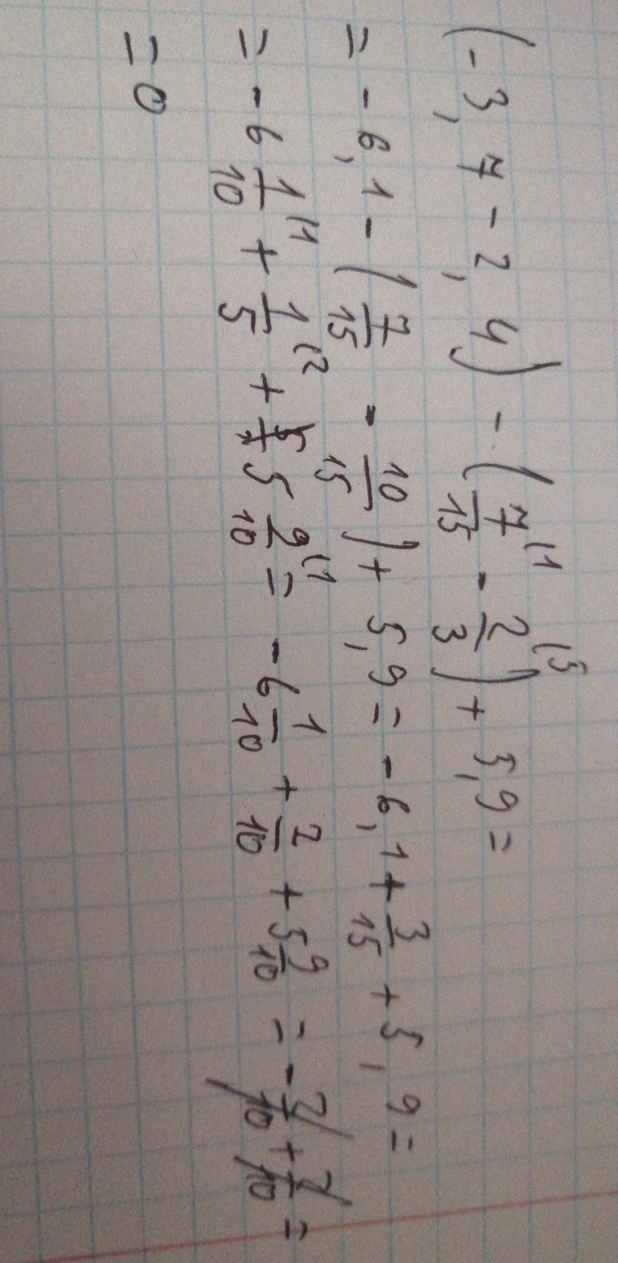 (-3,7-2,4)-(7/15-2/3)+5,9