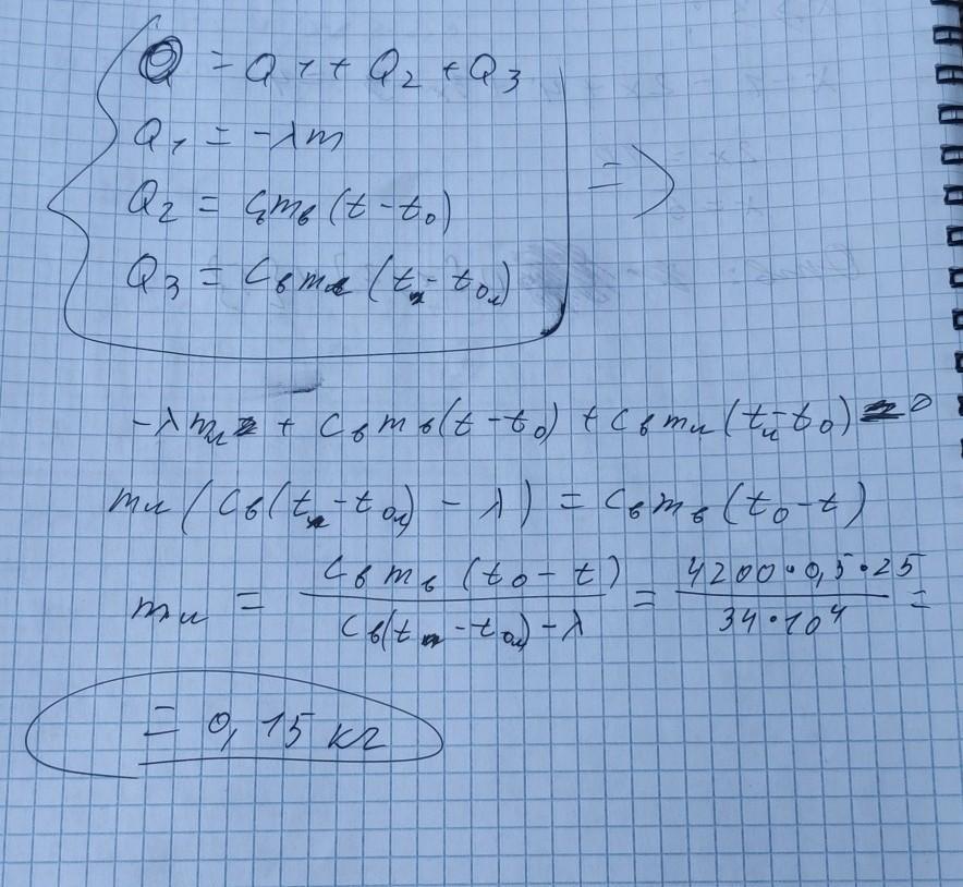 Сколько льда при температуре 0°С необходимо для того, чтобы температура воды массой 500г взятой при 25°С стала равной 0°С ? (удельная теплота плавления льда λл = 34·104 )