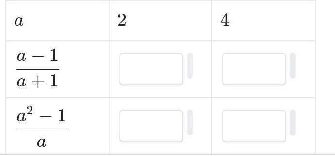 a=4: (а-1)/(а+1)=(4-1)/(4+1)=3/5=0,6; (а^2-1)/a=(4^2-1)/4=(16-1)/4=15/4=3 3/4=3,75