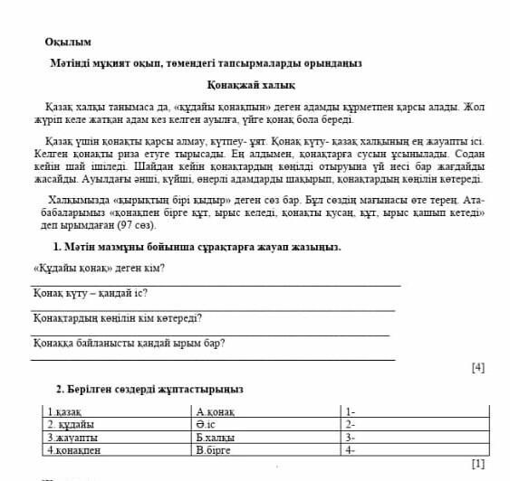 ответ первому вопросу кұдайы қонақпын деген адамды. там всё легко