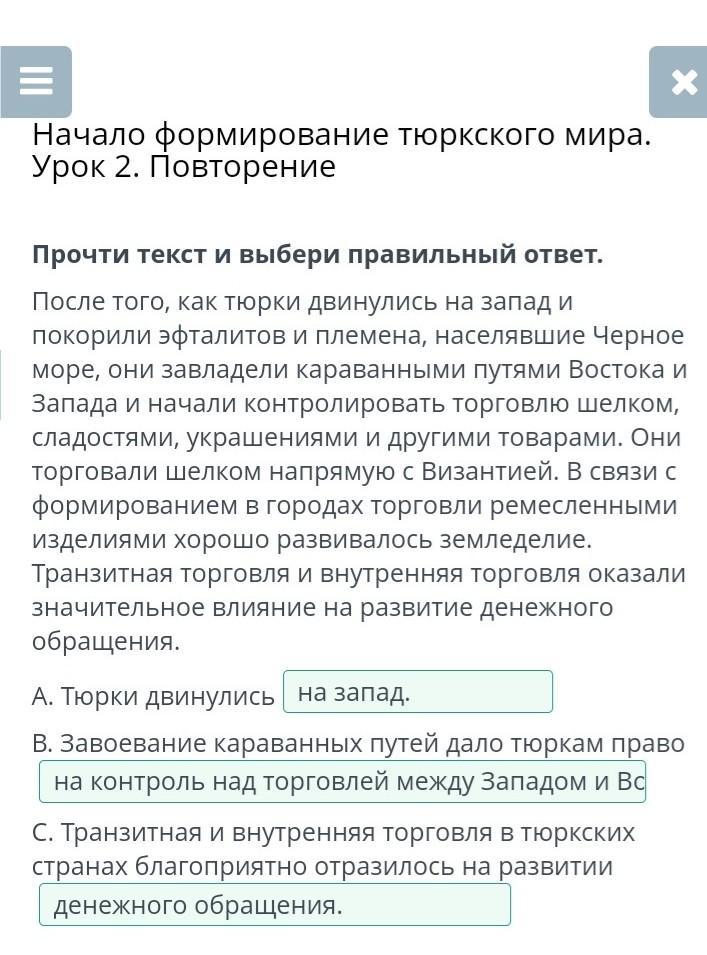С. Транзитная и внутренняя торговля в тюркских странах благоприятно отразилось на развитии....