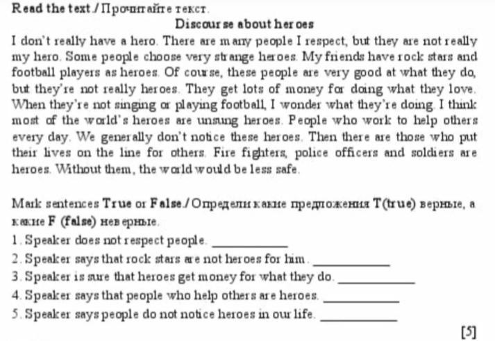Mark sentences True or Fasle Определи какие предложения T(rue) верные,а какие F(fasle) неверные.