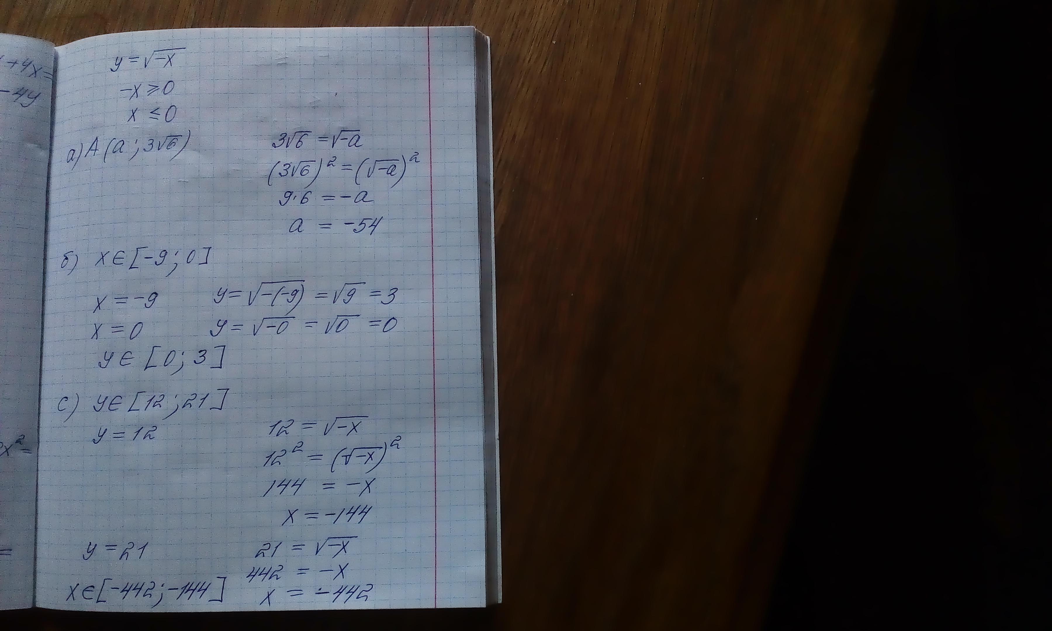 b) Если x∈[-9;0], то какие значения будет принимать данная функция?