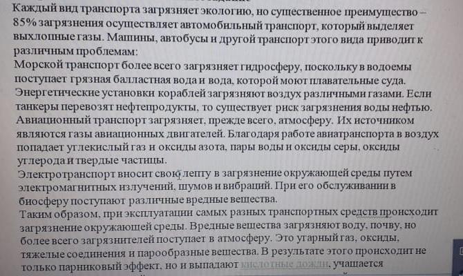 Основная мысль , в том что разные транспорты загрязняют окружающий мир и нужно беречь приподу.