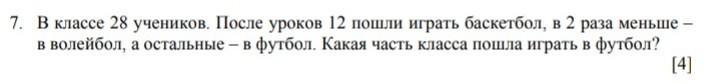 3) 10/28=5/14часть играла в футбол.