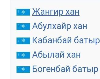 Ответ: Керей-хана, ойраты , Жанибек-хана, Васифи, Тахир-хана, Тауекель-хан и.т.д