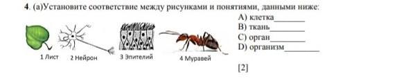 Установите соответствие между рисунками и понятия данными ниже лист Нейрон муравей клетка ткань орган организма