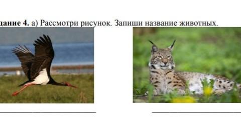 Задание 4. а) Рассмотри рисунок. Запиши название животных.
