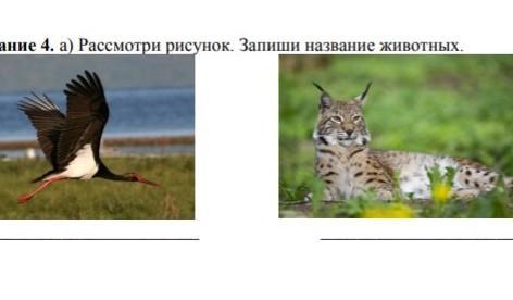 Задание 4. а) Рассмотри рисунок. Запиши название животных.