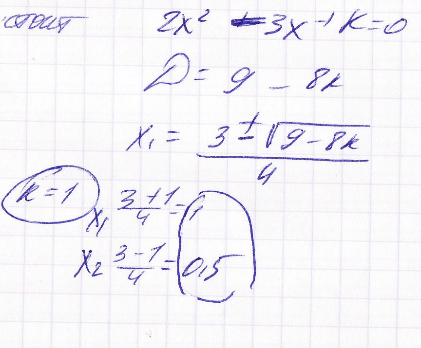 один из корней данного уравнения в 2 раза больше другого.Найдите корни уравнения и коэффициент k: