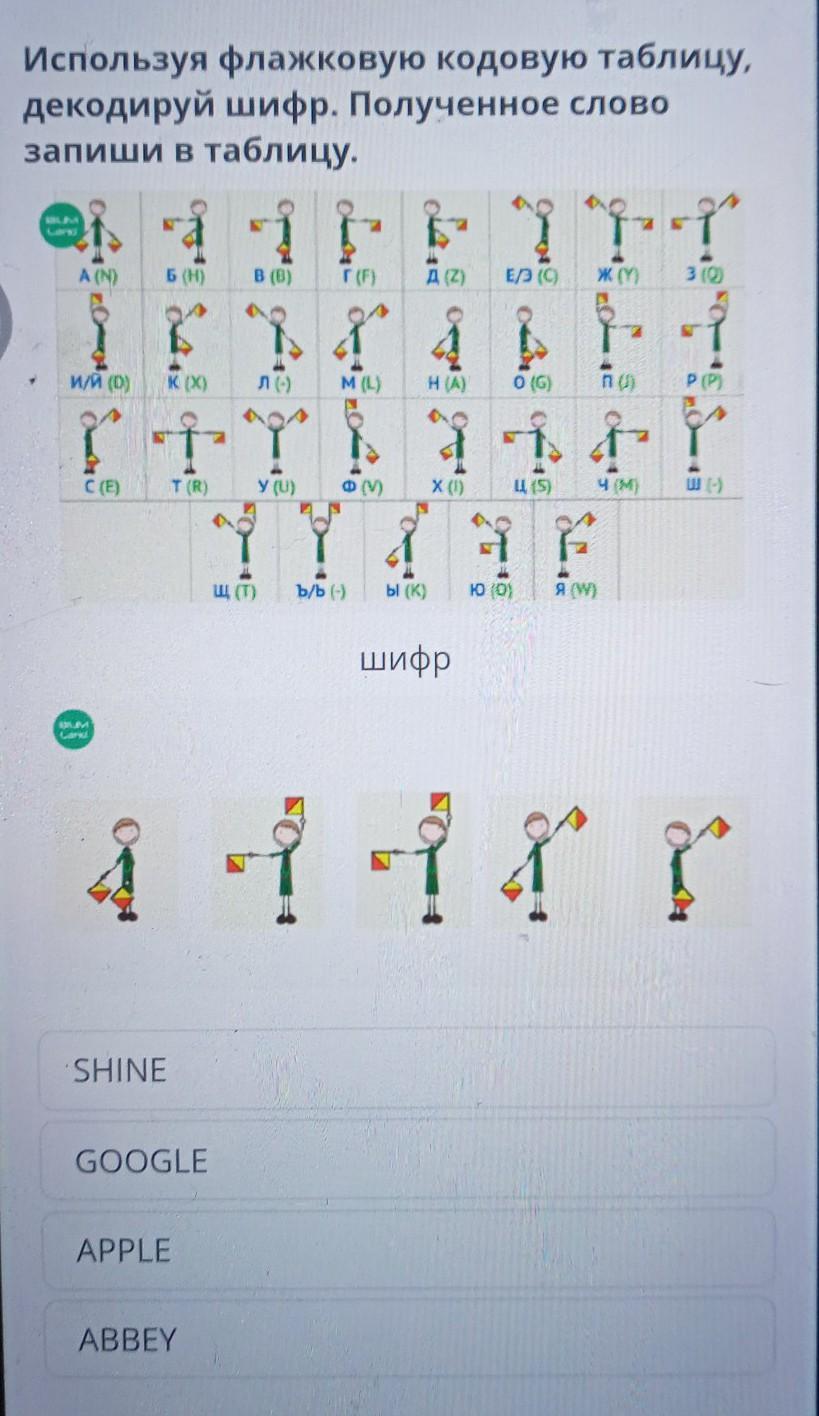 используя флажковый кодовую таблицу декодируй шифр полученное слово Запиши в таблицу