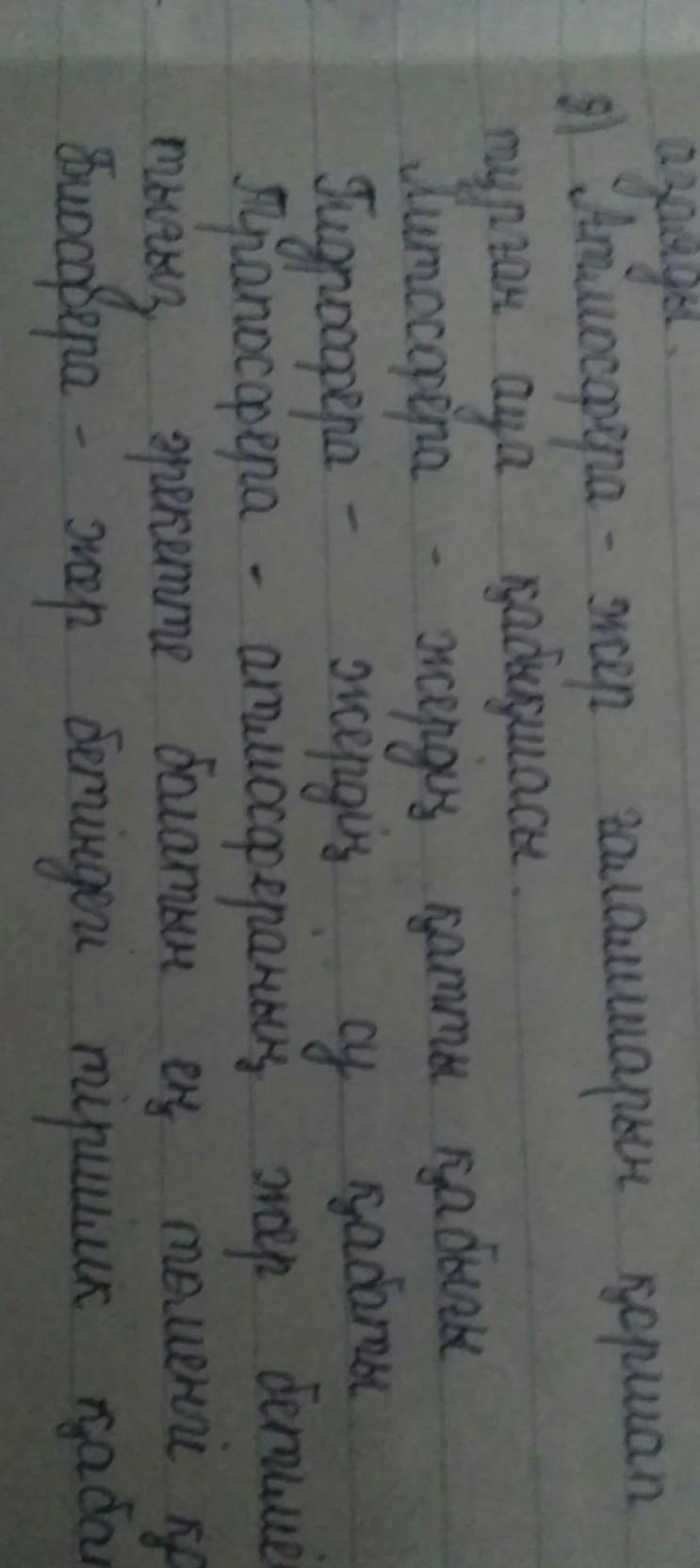 3-тапсырма Жер қабаттарының бөліктерін сипаттаңыз. Жер кабаттары Атмосфера | Гидросфера Литосфера Биосфера Сипаттамасы кто зделоет 5 звезд и лучши ответ