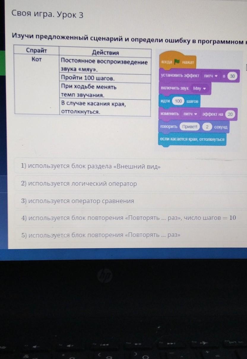 Изучи предложенный сценарий и определи ошибку в программном коде: