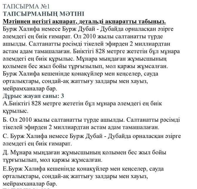 А.Биіктігі 828 мертге жететін бұл мұнара әлемдегі ең биік ғимарат.