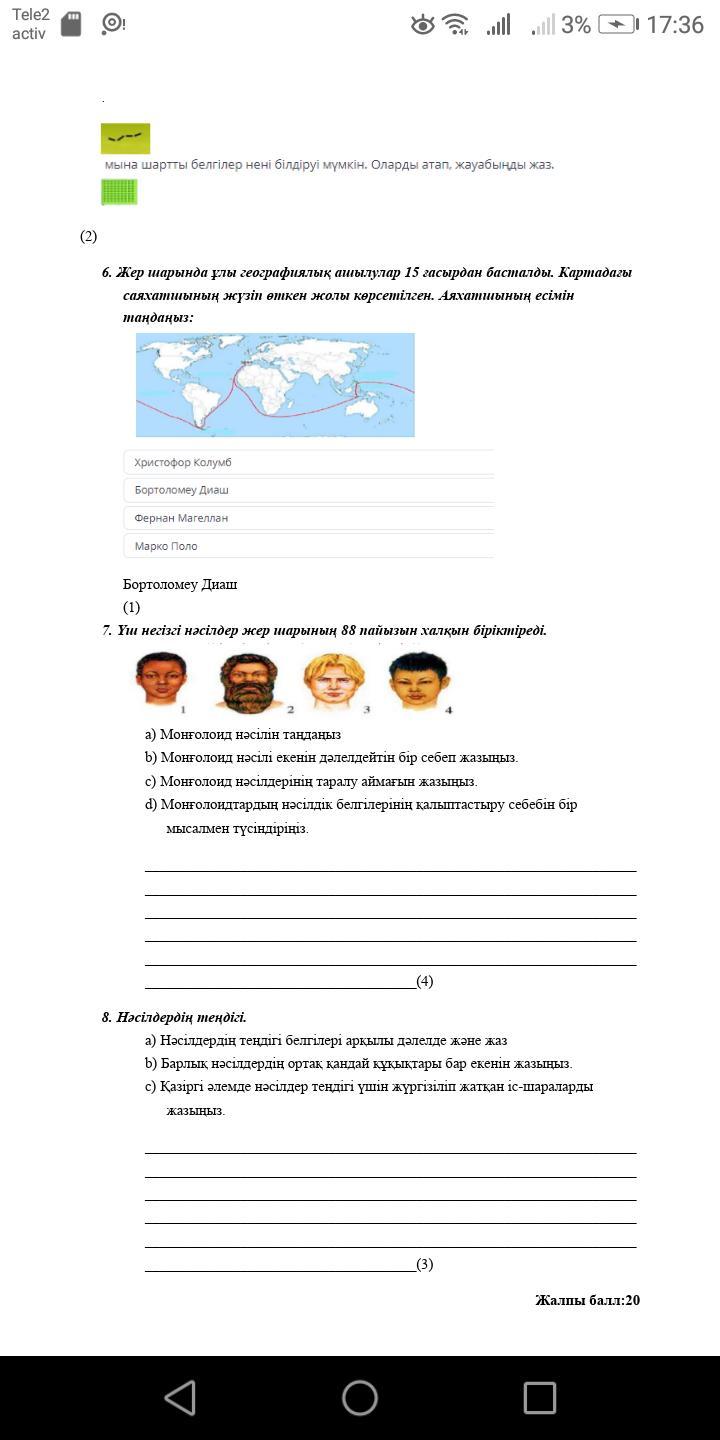 7 тапсырмада 4 шісі моңғолойд нәсіл