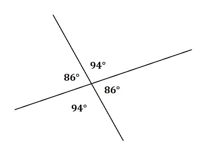 Так как один угол равен 86*, то ему вертикальный также равен 86*.