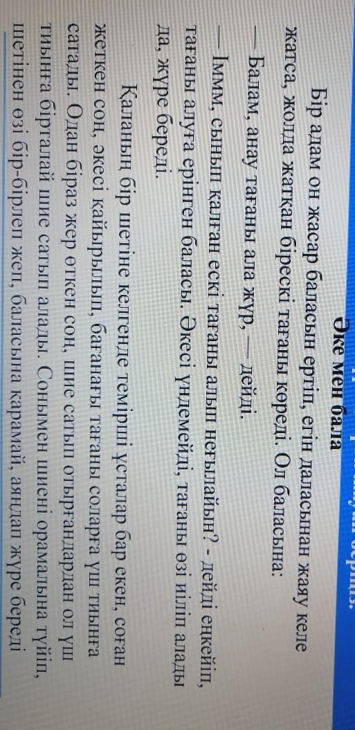 Ответ:бұл жерде негізгі ақпарат:баласы әкесін тыңдамауы