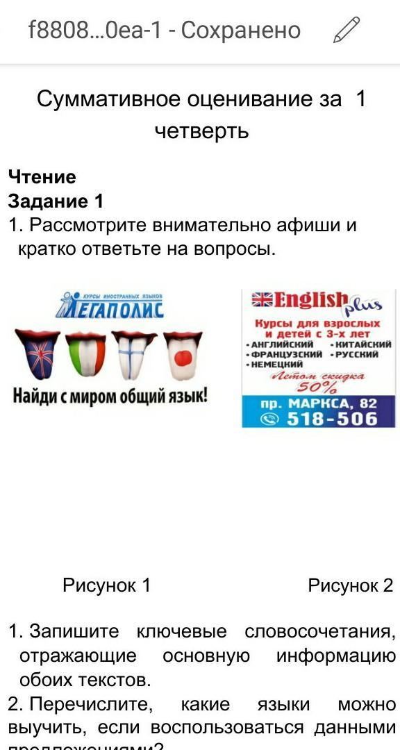 1. Ключевые словосочетания: Школа иностранных языков, Центр Обучения.