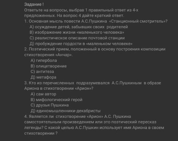 4. Стихотворение "Арион" было написано под впечатлением от легенды о певце Арионе. Пушкин был знаком с легендой, знал её в деталях, но когда решил положить в основу своего стихотворения, то оставил от легенды только имя певца и мотив его спасения.