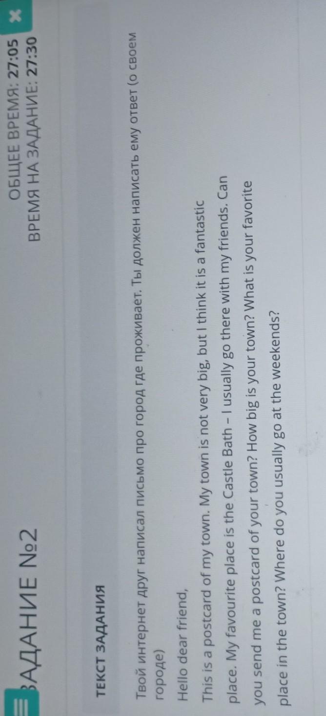 Твой интернет друг написал письмо про город где проживает. Ты должен написать ему ответ (о своем