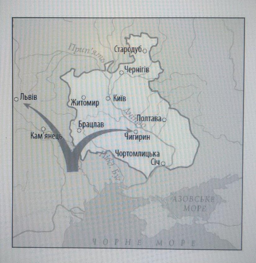 укажіть,в який із періодів існування козацької України відбулися події ,що ілюструє картосхема?