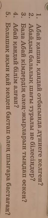 Ұлы ақын, ағартушы, қазақтың жазба әдебиетінің және әдеби тілінің негізін салушы – Абай (Ибрахим) Құнанбайұлы Өскенбайұлы Шығыс Қазақстан облысы (бұрынғы Семей уезі) Абай ауданында (бұрынғы Шыңғыстау облысы) Шыңғыс тауының бауырында дүниеге келді. Абай атақты Тобықты руының Ырғызбай деген тобынан тарайды. Ол ауыл молдасынан оқып жүрген кішкентай кезінен-ақ зеректігімен көзге түседі. Кейін ол Семей қаласында 3 жылдық медресе тәрбиесін алады.