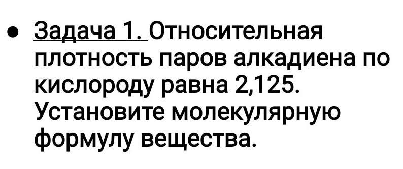 Молярная масса алкадиена: 2,125*М(О2)=2,125*32=68 г/моль, тогда СnH(2n-2), тогда 12*n+1*(2*n-2)=68; n=5, С5Н8 - пентадиен