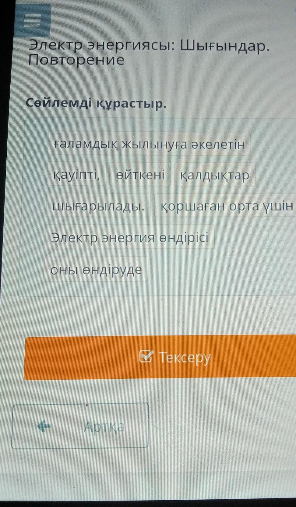 Электр энергия өндірісі қоршаған орта үшін қауіпті,өйткені оны өндіруде ғаламдық жылынуға әкелетін қалдықтар шығарылады