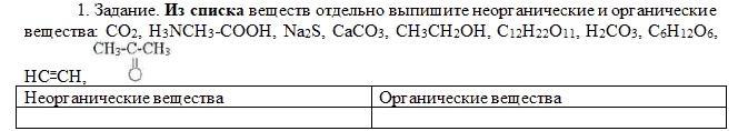 Неорганические: CO2, Na2S, CaCO3, H2CO3,