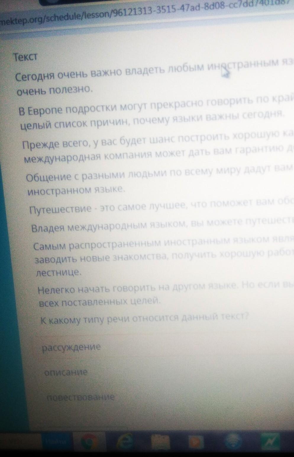 текст сегодня очень важно владеть любым иностранным языком Мы изучаем иностранные языки в школе колледж Это очень полезно текст к какому типу относится данный текст рассуждение описание повествование пожалуйста помогите