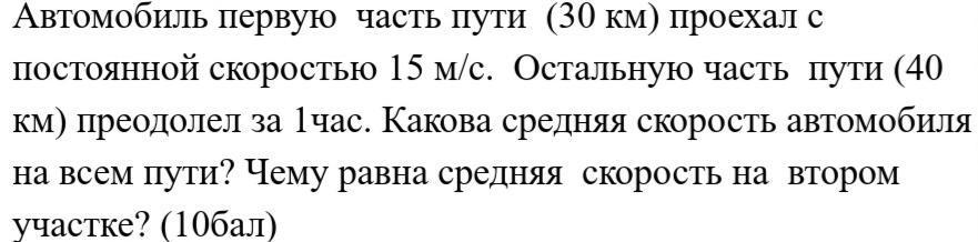 2)(30+40):(2+1)=70:3=23(м/с)-средняя скорость Авто.
