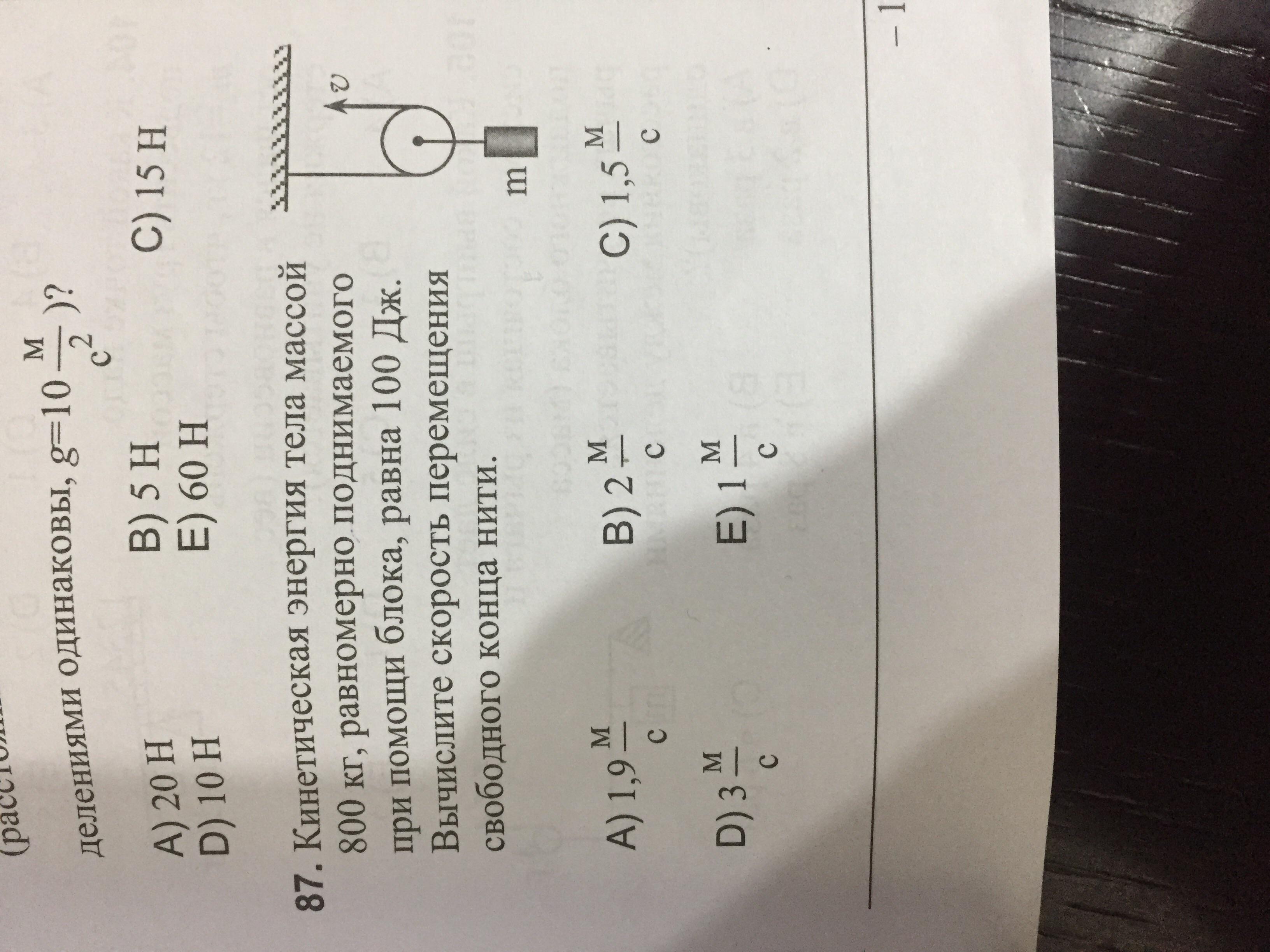 ПОМОГИТЕ ПОЖАЛУЙСТА!Кинетическая энергия тела массой 800 кг, равномерно поднимаемого при помощи блока, равна 100 Дж. Вычислите скорость перемещения свободного конца нити.