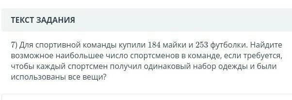 НОД (184; 253) = 23 - наибольшее число спортсменов в команде