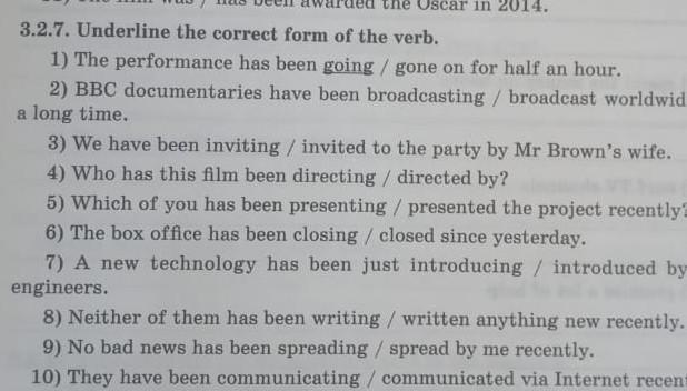 3.2.7. Underline the correct form of the verb.
