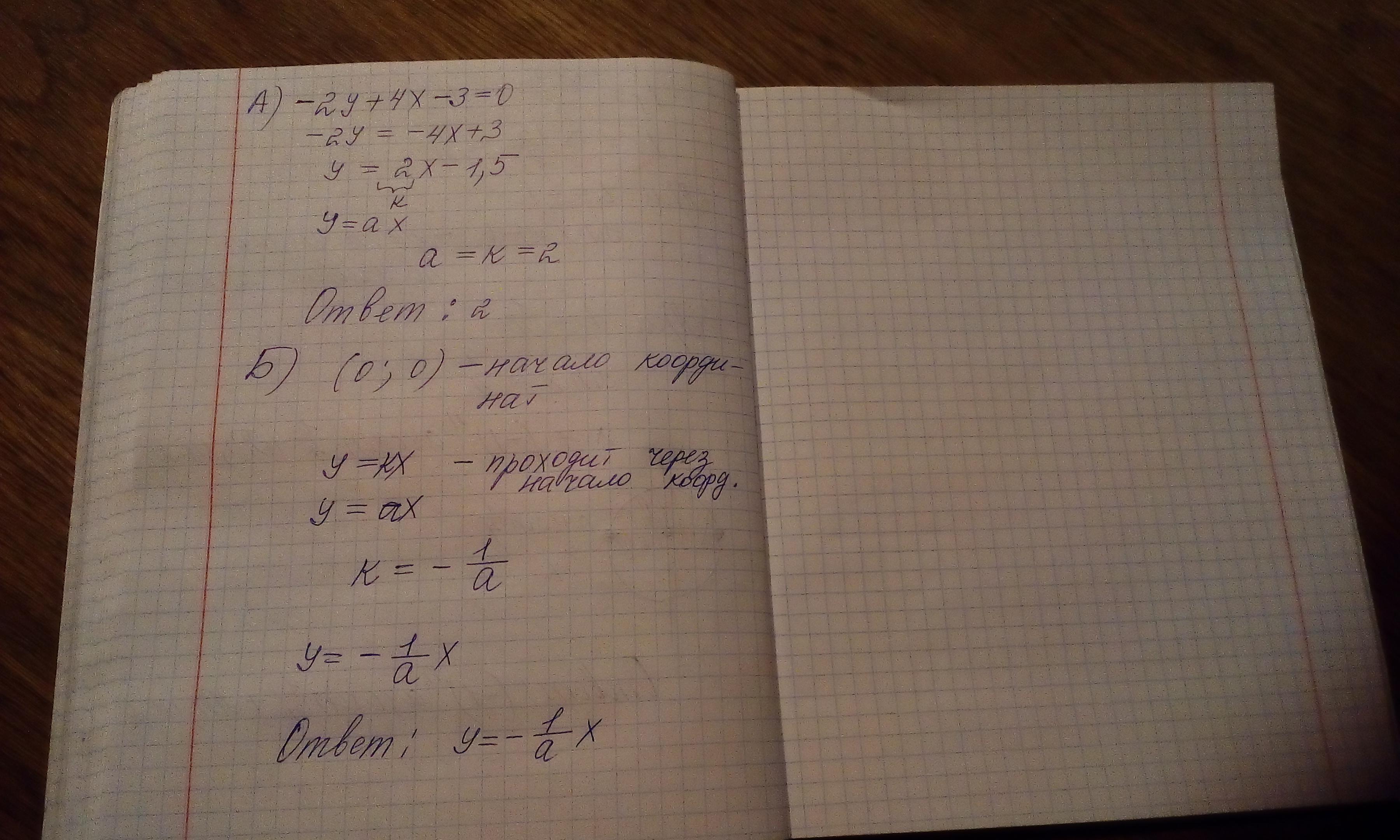Б) Составьте уравнение прямой проходящей через начало координат и перпендикулярной прямой у=ах