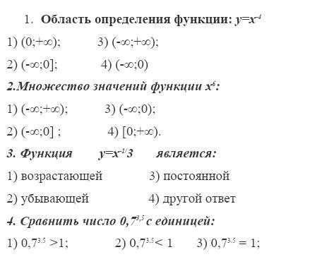 Помогите пожалуйста решить тест по теме "степенная функция" Баллы даю не маленькие!! (фото теста ниже)