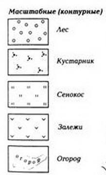 3). Картографические условные знаки — система знаковых графических обозначений, применяемая для изображения на картах различных объектов и явлений, их характеристик.